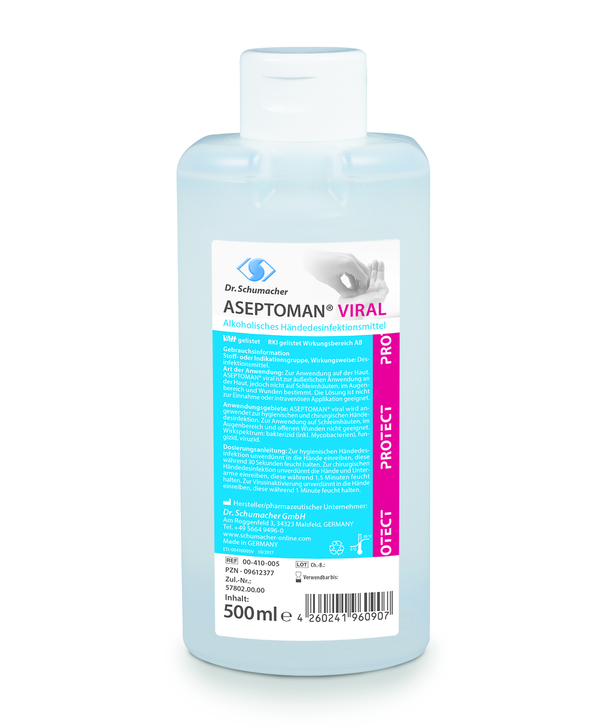 Flaschengröße:150 ml Kittelflasche = Art. Nr. SCH00-410-0015 500 ml Spenderflasche = Art. Nr. SCH00-410-005 1000 ml Spenderflasche = Art. Nr. SCH00-410-010 |